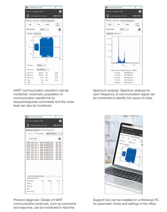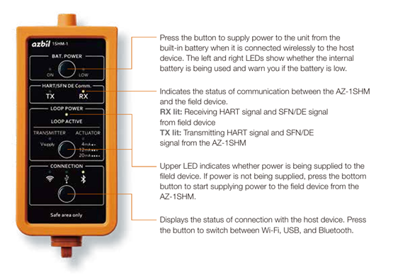 With model AZ-1SHM, HART devices can be set up and adjusted more efficiently and safely. You can also use it as a tool to analyze the cause if a communication problem occurs.